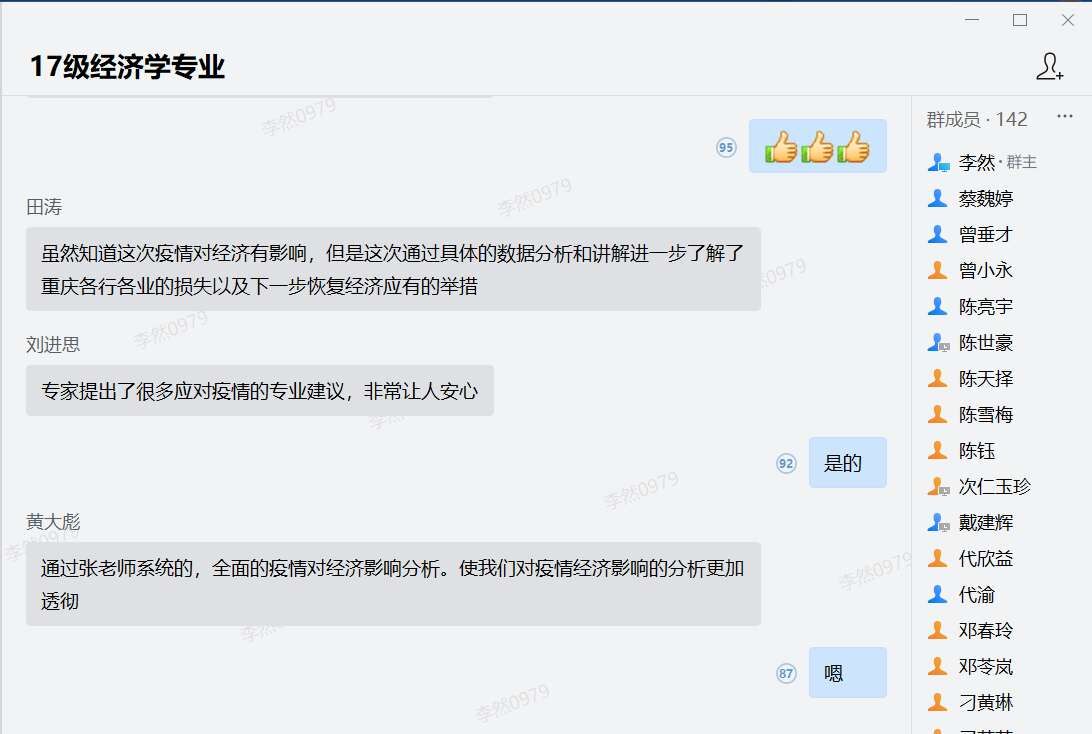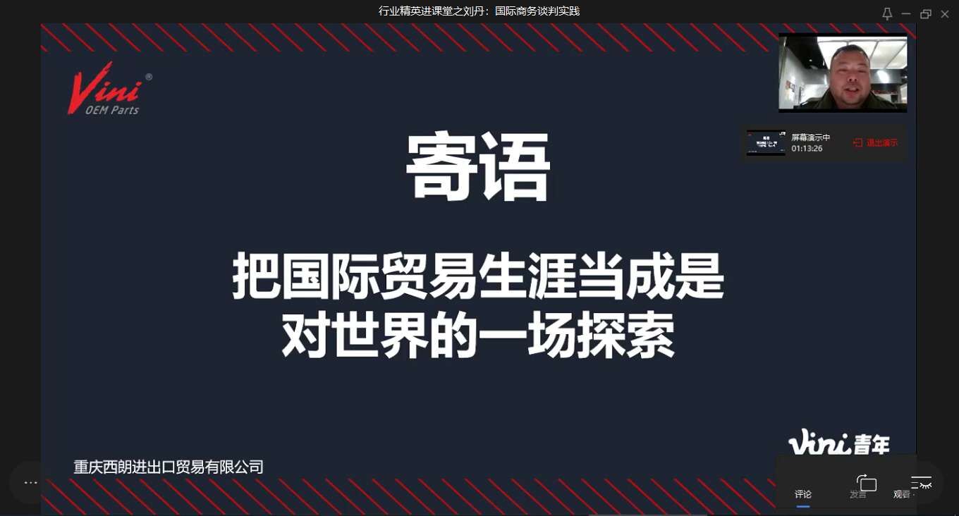 培育具有中国情怀、全球视野的中国特色社会主义经济学人才,引导学生树立正确世界观和人生观,正确理解和认识我国历史经验和当代实践所提出的理论命题和实际问题,是bat365官网经济学类专业教育教学改革面临的重大使命。以世情国情民情教育为主线的“行业精英进课堂”活动,有效将思想政治教育与专业教育融合、显性教育与隐形教育相结合,学习中国理论、认识中国故事、倡导中国经验,潜移默化,立德树人,是课程思政的有效实现方式。本次活动结合了当前大家最为关心的疫情问题,深化了对中国各行各业现实问题的思考,让学生真正的“学以致用”。此外,行业专家们还为学生进行了价值引导,如重庆商社(集团)有限公司张泽军部长强调专业学习与综合素养的结合,寄往学生成为有情怀、敢担当、懂经营、会管理、能领导的卓越人才。重庆西朗进出口贸易有限公司刘丹总经理对“谈判的本质是取得信任, 而不是说服对方”进行阐述,勉励学生成为人生赢家。