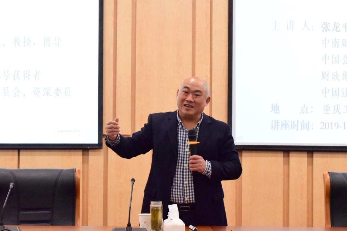 钟廷勇博士对会议进行总结。本次讲座持续三个小时,吸引了校内外120余名师生参加,张龙平教授不仅以丰富的专业知识、风趣幽默的授课方式、深厚的理论功底和严谨的治学态度,得到了广大师生的一致好评,更以他高尚的品德、无私的爱心激励着学院师生。他鼓励同学们要继承重工商大“厚德博学 求是创新”的校训,不断追求进步和卓越。本次讲座为学院和校外师生提供了与会计知名学者的学习交流的平台,也促进了学院MPAcc学科的建设与发展。
