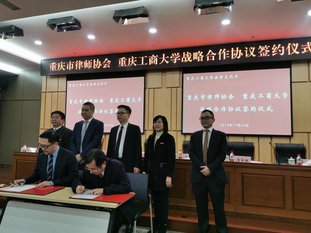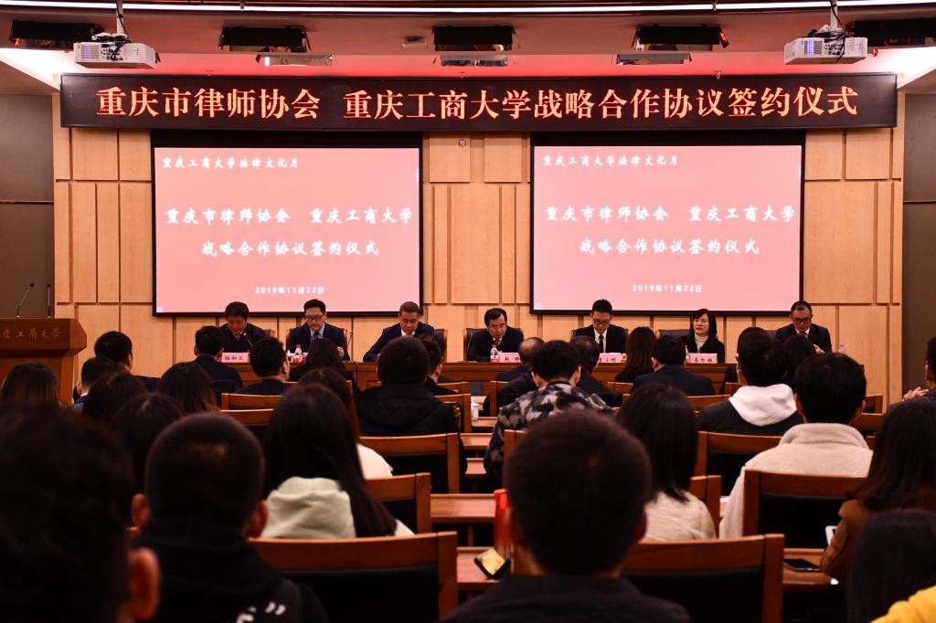 会上,赵骅代表学校致辞,他表示,重庆市律师协会近年来为服务全面依法治国战略,推动社会主义法治国家建设,服务国家和重庆经济社会发展作出了重要贡献,非常荣幸能有机会与重庆市律师协会合作。同时,bat365官网法学学科作为市级重点学科,目前拥有法律硕士等3个硕士学位授权点,知识产权专业为重庆市一流专业,这些优势资源都将对提升bat365官网与重庆市律师协会合作质量产生积极的促进作用。他希望以此次战略合作为契机,切实加强理论与实务有机融合,不断增进彼此交流,产出更加丰富的高质量研究成果,努力提升具有财经特色的法学人才培养质量,促进学科建设和办学实力迈上新台阶。随后,赵骅副校长与陈昊副会长代表双方签订《战略合作协议》。