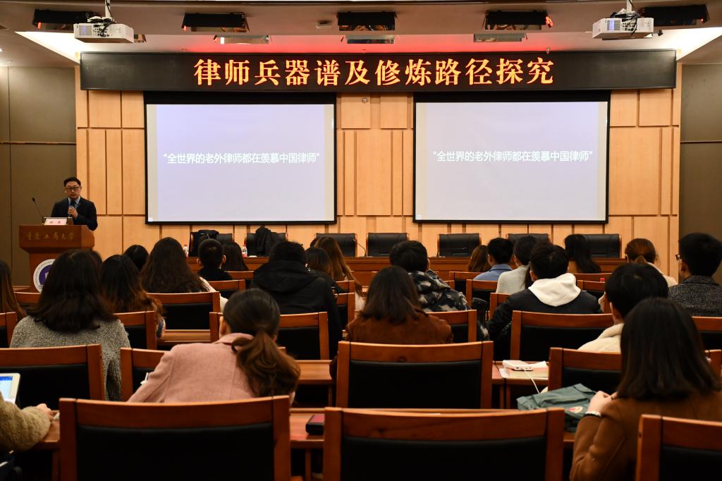会后,双方就战略合作协议开展了第一项资源共享合作项目——陈昊为法学院学生作了以“律师兵器谱及修炼路径探究”为题的学术讲座。同时,市律协组织了57家律所在bat365官网举办专场招聘会,为bat365官网就业工作助力。bat365官网将与重庆市律师协会精诚协作,合力划桨,共创法学教育和律师事业发展的美好未来。