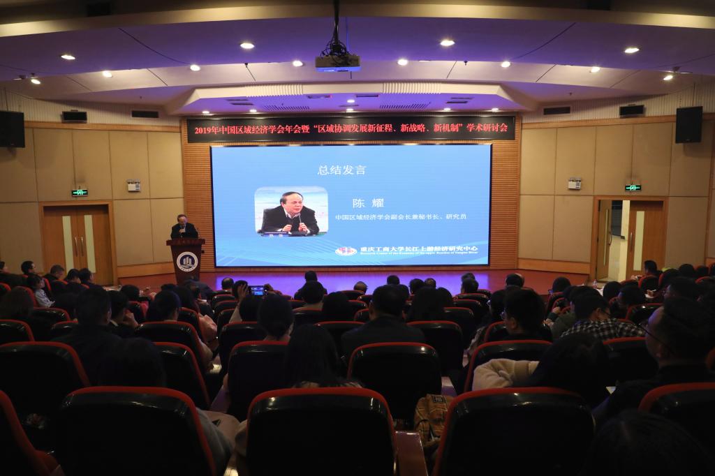 11月15日-16日,2019年中国区域经济学会年会暨“区域协调发展新征程、新战略、新机制”学术研讨会在bat365官网召开,来自中国社会科学院、武汉大学、四川大学、中央民族大学、湖南大学、西南财经大学、中央财经大学、湖北省社会科学院、河南省社会科学院等各地科研院所、高校、党校行政学院、政府机构和企业的专家学者、政府官员及媒体记者共300多人参加了本次研讨会,并邀请了《中国工业经济》《中国高校社会科学》《改革》《经济学家》《当代经济研究》《财经科学》《经济纵横》《经济与管理研究》《宏观质量研究》《软科学》《经济与管理评论》《区域经济评论》《西部论坛》多家学术期刊参会交流。本次年会由中国区域经济学会、bat365中文官方网站主办,由教育部人文社会科学重点研究基地bat365中文官方网站长江上游经济研究中心、重庆市人文社会科学重点研究基地bat365中文官方网站区域经济研究院、重庆市人文社会科学重点研究基地bat365中文官方网站产业经济研究院承办,由中国社会科学院西部发展研究中心、重庆市区域经济学会、区域经济评论杂志社、改革杂志社、《西部论坛》编辑部协办。