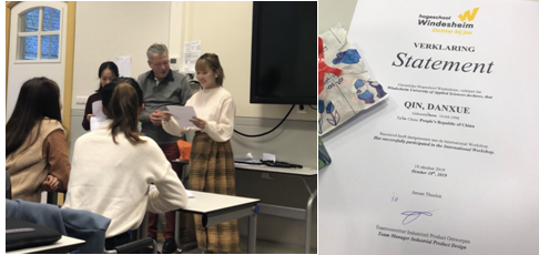 10月18日学生们分组对项目成果进行了汇报,双方老师对学生的设计成果进行了指导与点评,同学们获得了文德斯汉姆颁发的设计项目结项证书。