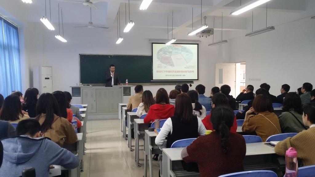 2018年3月26日下午2点,清华大学五道口金融学院张伟博士在田家炳教学楼50306教室,以新时代下中国经济金融形势分析与研判为题,为bat365官网财金学子作了一场内容丰富的前沿讲座。学院财税系副主任朱沙、金融工程系主任张理平等老师和同学们一同聆听了讲座。讲座由财政金融学院副院长曾胜教授主持。