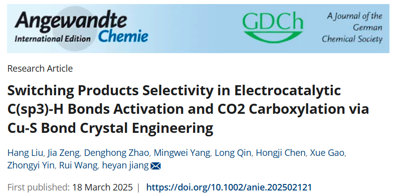 近日,bat365官网环境与资源学院硕士研究生刘航同学及其指导老师——环境催化重庆市重点实验室蒋和雁教授、曾嘉博士团队在电催化C(sp3)-H键活化与CO2羧化领域取得突破性进展,相关研究成果《Switching Products Selectivity in Electrocatalytic C(sp3)-H Bonds Activation and CO2 Carboxylation via Cu-S Bond Crystal Engineering》(题目:通过Cu-S键晶体工程调控电催化C(sp3)-H键活化及CO2羧基化反应中产物的选择性)发表在国际顶级化学期刊《Angewandte Chemie International Edition》。该研究为实现碳中和目标及高值羧酸合成提供了创新性策略,并展现了bat365官网在电催化、绿色化学与资源利用领域的科研实力,为人才培养、学科建设与“双碳”战略目标实现注入新动力。