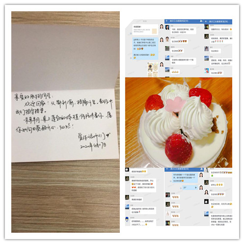 通识学院高度重视湖北学生返校健康管理工作,全面系统考虑各个工作环节,在工作过程中抓细节、抓落实。全体辅导员坚守岗位,为学生提供全方位的生活服务、心理关注和人文关怀。学院为过生日的同学精心设计线上生日会、送去生日蛋糕,通过企业微信群加强与学生的线上沟通,积极展示学校提供的服务。返校学生与老师及相关工作人员形成良好互动,纷纷向学校表示感谢。学院将以此为契机,加强对学生的爱国主义、集体主义、感恩教育,引导他们担当有为、砥砺奋进。