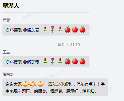 骆东奇院长对此次活动作了点评。他谈到,此次参赛选手选题的角度都很新颖,内容贴合活动主题,弘扬了强烈的爱国主义精神,彰显了新时代大学生的爱国主义情怀,选手语言流畅,感情真挚,表达了对抗疫逆行者深深的赞赏和敬重。其次,此次活动虽只能通过会议听见声音、看见文字、视频和PPT,但是丝毫不影响同学们的活动热情,为每一个参赛选手和认真聆听比赛的同学点赞。接着,他赞扬了学院学进会线上有力的组织,希望大家能够到班上分享精彩的朗诵,师生一起分享美文、美声,弘扬爱国主义精神。