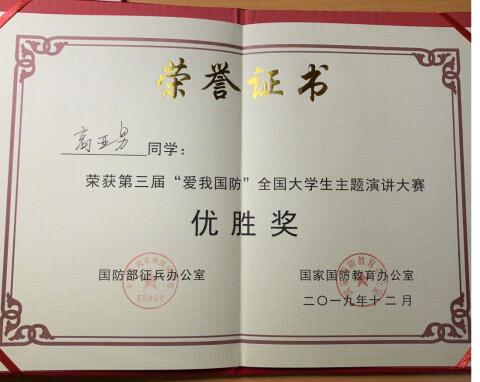 bat365官网历来高度重视大学生的思想引领和“爱国主义”国防教育,高亚男同学在本次全国大赛中获奖实现了bat365官网学子在该项比赛国家级奖项的突破,也向全国展示了bat365官网学生的青春风采、爱国热情和报国情怀。