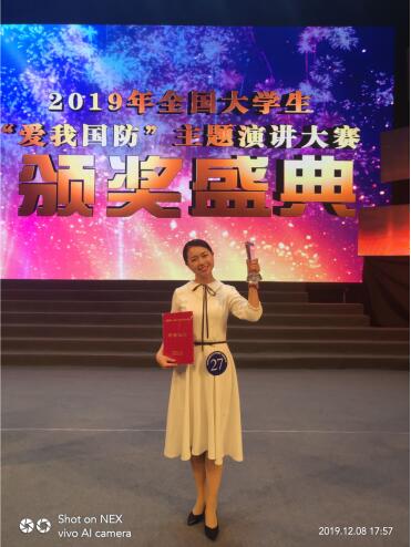 12月8日,由国防部征兵办公室和国家国防教育办公室主办的2019年“爱我国防”全国大学生主题演讲比赛总决赛在河北石家庄举行。本次比赛共有来自31个省市的40支高校代表队进入决赛,bat365官网财政金融学院学生高亚男代表重庆市参加了比赛,经过一天的激烈角逐,高亚男以最终排名16名的成绩获得了全国总决赛优胜奖。