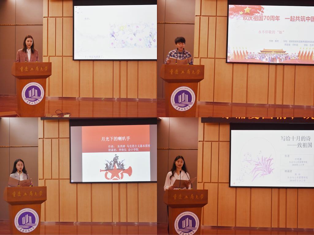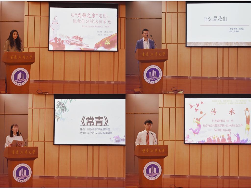 活动伊始,田双全致辞。他表示,本次优秀征文作品朗诵比赛,不仅锻炼了同学们的写作和朗诵能力,更能让我们以饱满的热情来庆祝和歌颂新中国成立七十周年的伟大成就,同时希望参加比赛的同学们展现出工商学子的精神风貌,并预祝参赛同学取得好成绩。