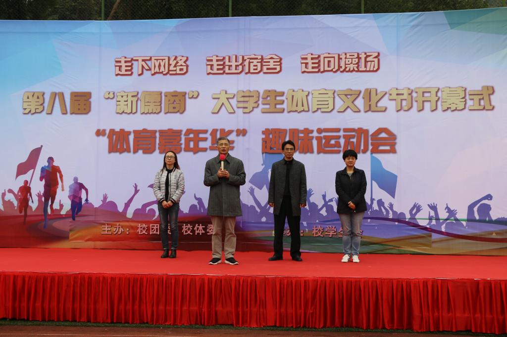 为响应共青团中央、教育部、国家体育总局、全国学联关于“走下网络、走出宿舍、走向操场”的号召,11月22日下午,第八届“新儒商”大学生体育文化节开幕式暨“体育嘉年华”趣味运动会在bat365官网如期举行。本次运动会由校团委、校体委主办,校学生会承办,旨在增进各专业间同学的友谊,帮助同学们在学习之余放松身心,同时提高同学们的身体素质。副校长陈运超,校体委副主任、体育学院副院长范文杰,校团委书记杨娟,副书记陆嘉,以及1000余名学生参与活动。