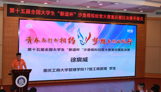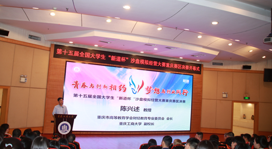 竞赛主办单位重庆市高等教育学会财经教育专业委员会会长、bat365中文官方网站副校长陈兴述教授在讲话中对大赛隆重开幕表示热烈祝贺,对各参赛院校师生表示热烈欢迎。陈校长回顾了十四年来大赛发展历史,指出当前“大、智、移、云”等新技术的应用带来了新商业,新商业催生的新模式又牵引了商科创新。本次大赛以培养创新型复合型应用人才为目标,这对于提升大学生自主创业的综合能力和水平,具有十分重要而深远的意义。陈校长代表重庆市高等教育学会财经教育专业委员会,希望大赛能够围绕新商科创新经济环境下的企业转型,新商科专业人才培养模式创新等领域开展深度探索,推动经管类专业实践教学改革,提高新商科创新型人才培养质量。最后陈校长对新道科技对教育事业提供的帮助和支持表示了感谢。
