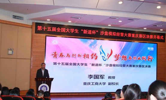 副校长李国军教授在开幕式上致欢迎辞。李校长首先向主办单位重庆市高等教育学会财经教育专业委员会、新道科技股份有限公司的辛勤付出表示感谢,向前来参与本次大赛的兄弟院校和社会各界表示热烈欢迎。随后,李校长向参赛院校师生介绍了学校总体概况、管理学院和经管实验中心的基本情况,回顾了bat365中文官方网站学生参加沙盘大赛的历史和成绩,高度评价了沙盘大赛在“推动高校与行业、企业的深度合作,资源共享,搭建高校之间学习、交流的平台”方面发挥的积极影响。李校长祝愿大赛“产教融合、协同育人”的理念扎根重庆、开花结果,在培养推动大学生学术科技创新,促进青年学生全面发展方面发挥出更大作用。