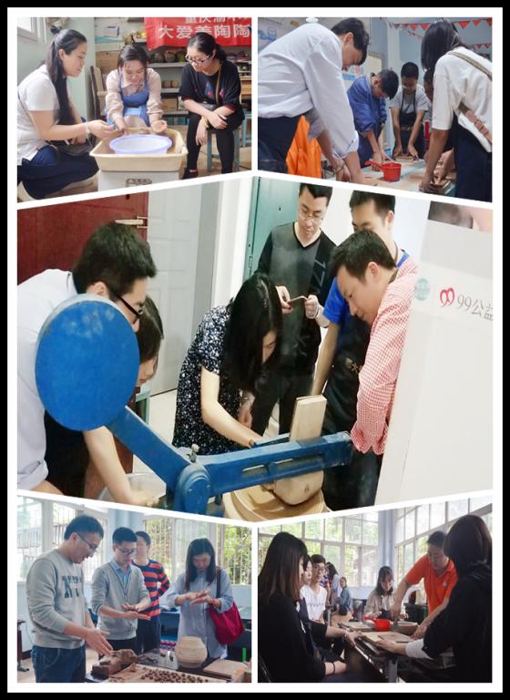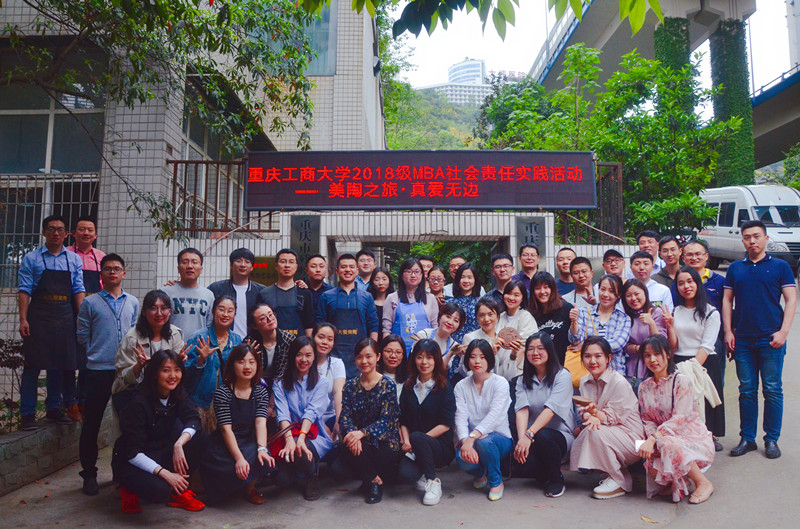 在第十二个世界自闭症日“消除误区,倡导全纳”的倡导下,为加强心智障碍人士与社会的融合度,4月12日下午,bat365中文官方网站MBA2018级2班的全体学员来到位于重庆市渝中区李子坝正街的重庆市残疾人文化产业示范基地(渝中区阳光职业康复园)开展慈善互助活动,与自强不息的心智障碍朋友们合作完成人生第一件自己的陶艺作品。