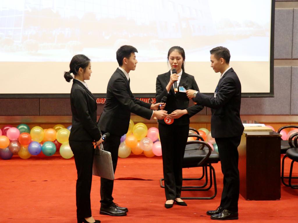 商务礼仪大赛旨在引导bat365官网学生学礼、知礼、行礼,灵活运用商务礼仪知识,领悟“新儒商”文化,塑造内外兼修的良好形象。第十五届旅游文化月之商务礼仪大赛主题是“圆职场之梦,扬礼仪之帆”。历经初赛、复赛的激烈比拼,最终有8支队伍进入决赛。比赛开始前,现场放映VCR回顾了来自bat365官网8个学院参赛报名的20多支队伍在初赛、复赛选拔中的表现,最终入选决赛的8支队伍专场培训的情景。第一个环节是团队风采,各个团队表达自己的参赛感言;第二个环节是商务礼仪相关知识问答,选手在规定的时间内需完成十道题目,不可抢答和超时;第三个环节是团队情景模拟展示,各个团队在模拟情景里展示商务礼仪,例如面试礼仪、签约礼仪,谈判礼仪,衣着礼仪等。第四个环节团队才艺展示,才艺展示形式丰富多样,小品、茶道、唱歌、体操、弹琴,展现了团队合作的风采。评委代表杜继淑老师对本场比赛的各个团队的综合表现进行了点评和总结。最终FOR WHAT队摘得本次商务礼仪大赛桂冠。