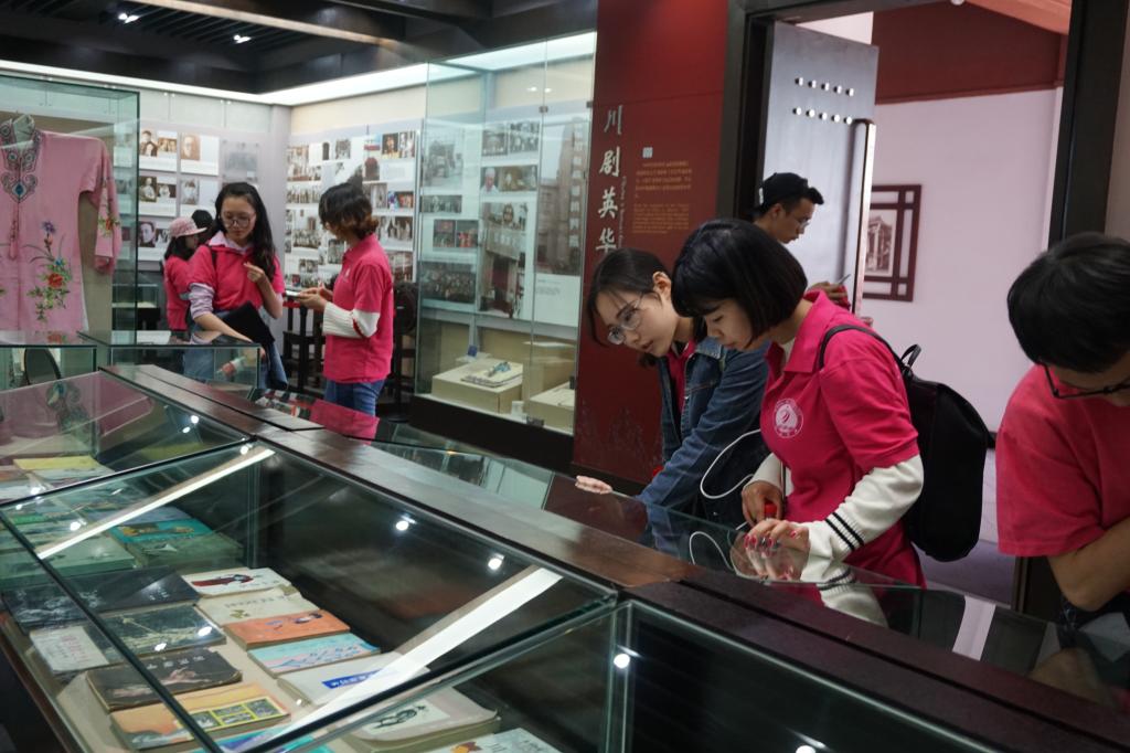 川剧,是中国传统戏曲剧种之一,流行于四川东中部、重庆及贵州、云南部分地区。2006年5月20日,川剧经国务院批准列入第一批国家级非物质文化遗产名录。为了让大家对川剧有更深入的了解,本次活动首先安排专业讲解员带领同学们参观川剧院博物馆的4个展厅。专业讲解员从川剧的起源、行头、脸谱、发展等方面向同学们系统的介绍川剧相关知识,同学们被形式各样的脸谱和华贵异常的戏服吸引,当得知戏服上的金色绣图为黄金打造的金线绣制,同学们更是赞叹连连。讲解员娓娓道来的述说,让同学们听得入迷,纷纷感叹“涨知识”了。