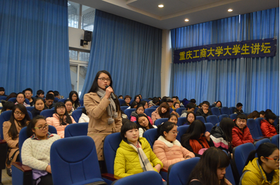 在互动环节,同学们竞相发言,现场气氛十分热烈。应用技术学院学团办主任谢泽文老师参加讲坛,并为主讲人颁发了证书。