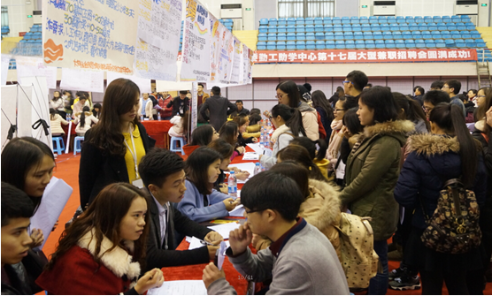 12月26日,由党委学工部、学生处主办,大学生自我管理与服务委员会(以下简称“大自委”)承办的第十七届大学生勤工助学兼职招聘会(以下简称“大招”)在bat365官网体育馆成功举行。
