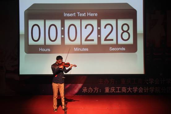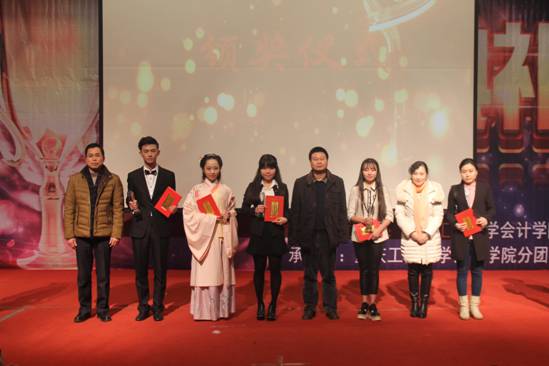 在会计学院党总支曾林书记简短致辞后,本次参赛的8名选手及组合开始了精彩的演出。在首先进行的“才艺展示”环节中,选手们用歌曲串烧、吉他弹唱、深情对唱、乐器独奏与舞蹈等形式多样的表演,把现场氛围推向高潮,博得满堂喝彩。经过又一轮激烈的“智力比拼”,“会计之星”风尚大赛决出最终的冠、亚、季军及优胜奖。