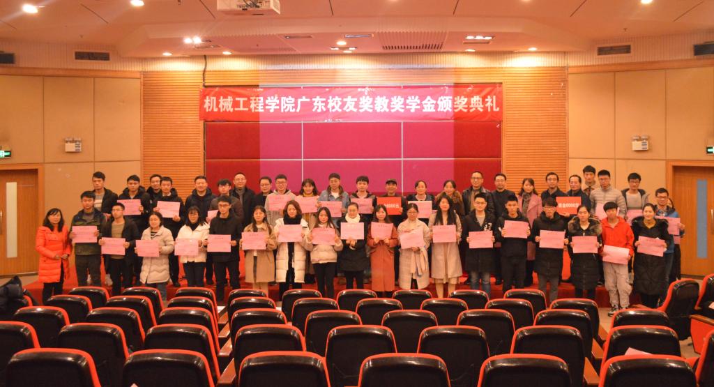 广东校友奖教奖学金由广东校友分会94届机制专业毕业校友钟仁东先生捐助100万元人民币设立,每年奖金20万元,其中奖教金为8000元/每人,学生学习状元奖为4000元/每人,优秀学生干部奖学金为2000元/每人。本次奖教奖学金根据《广东校友奖教奖学金评选办法》,通过教师和学生申报、网络投票、学生投票、教师投票和广东校友奖教奖学金评选领导小组审议等环节,黄先德、陈亚华、周强、谢燕平、廖西平、吕尚书、邢月军等7位教师获得奖教金;30名班级学习成绩第一名的学生获得学习状元奖;6名学生干部获得优秀学生干部奖学金。