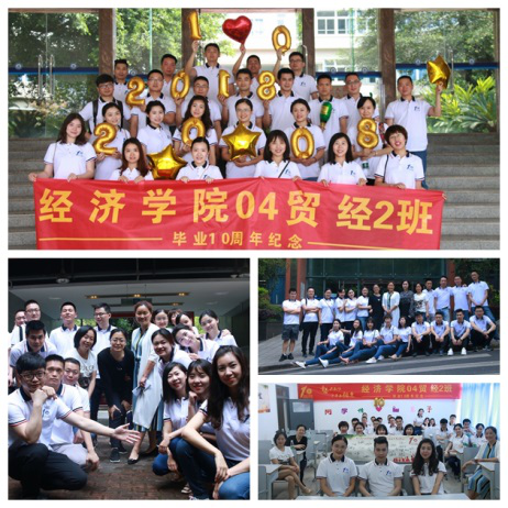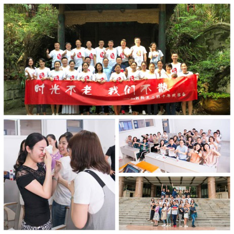 4月30日,商务策划学院2004级物流管理1、2班60余名校友在博智楼417教室和南山书院举行了一场别开生面的“主题班会”。商务策划学院分党委书记邓德敏、原2004级辅导员李树良老师参加了此次校友返校活动。活动开始,班委按照大学上课惯例对全班同学进行点名,重温旧日上课氛围。紧接着以ppt形式播放老照片,回放悠悠往事,勾起无限回忆。随后在“好久不见,甚是想念”环节,大家围成一圈逐一拥抱,表达深深的同学情与久别的思念。