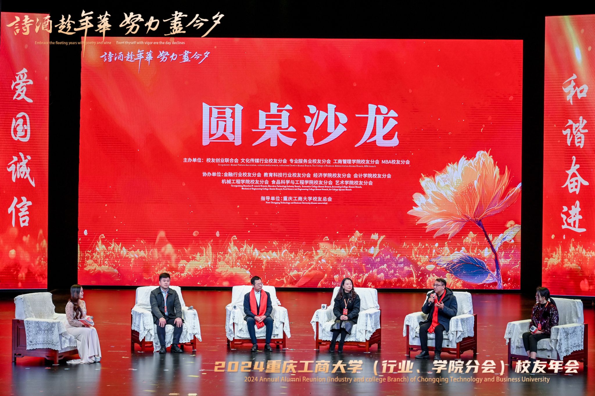 本次年会是由学校校友总会指导,校友创业联合会、文化传媒行业校友分会、专业服务业校友分会、工商管理学院校友分会、MBA校友分会主办,金融行业校友分会、教育科技行业校友分会、经济学院校友分会、会计学院校友分会、机械工程学院校友分会、食品科学与工程学院校友分会、艺术学院校友分会协办。年会采取了线下现场与线上直播同步开展的方式,线上直播视频观看逾2500人、直播点赞数超过6600,线上图片直播浏览量高达69146人次。