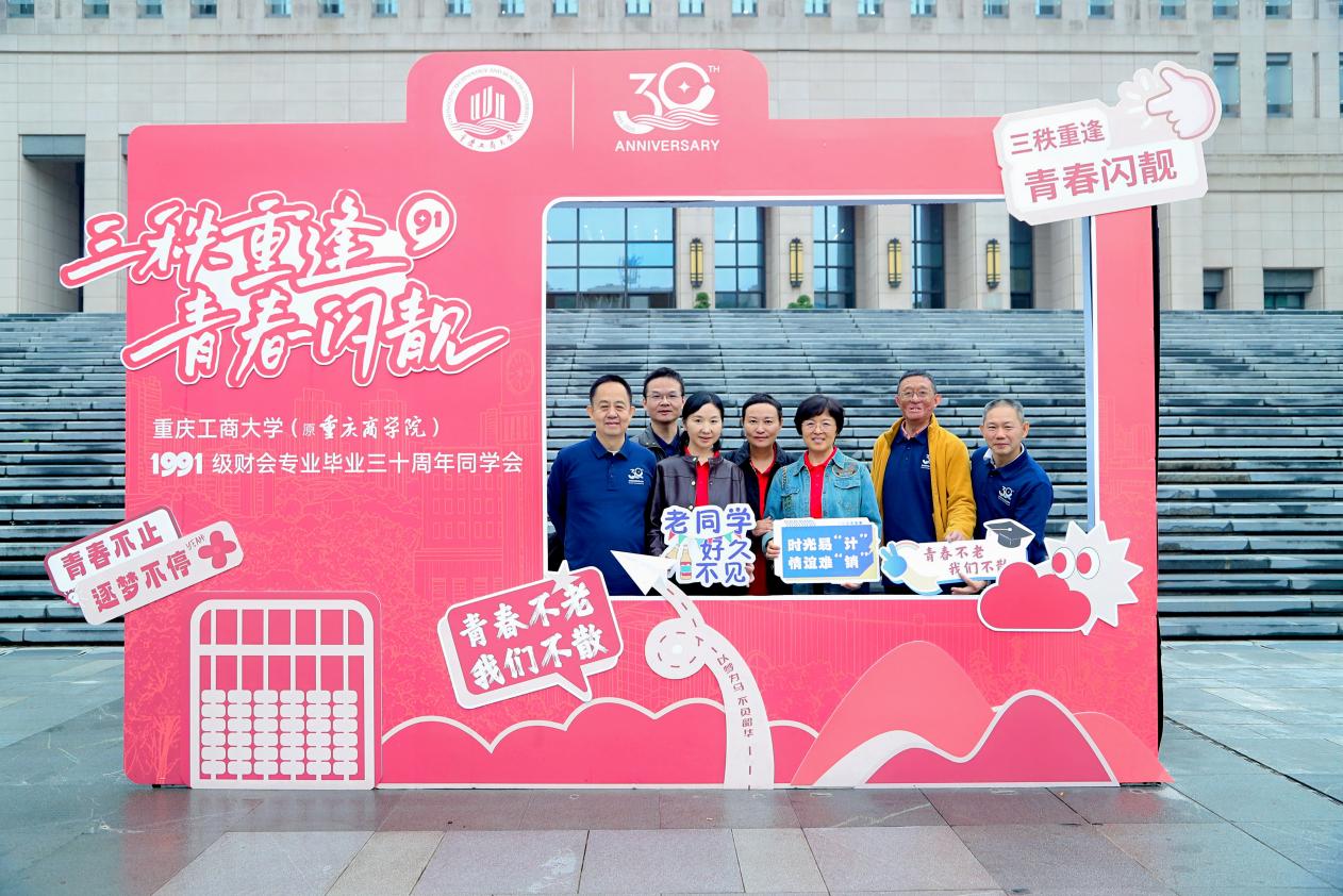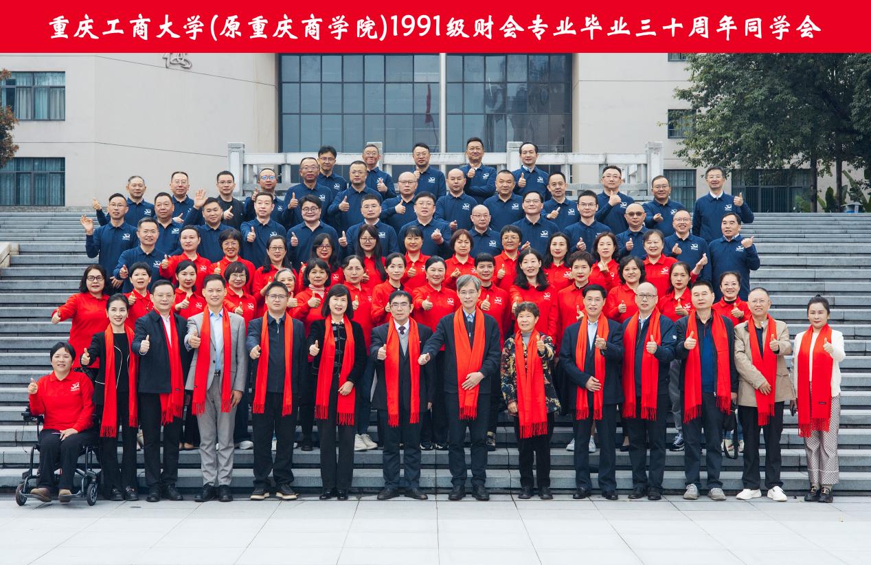 金秋的校园,丹桂飘香,风和日丽。10月25日,会计学院曾荣获“全国先进班集体标兵”称号的1991级财会专业学子毕业30周年秩年返校活动在南岸校区举行。阔别三十载的校友们从祖国的四面八方重聚校园,共忆青春岁月,共叙师生情谊,共话母校发展。bat365中文官方网站党委常委、副校长田双全,原bat365中文官方网站校长孙芳城,原bat365中文官方网站副校长陈兴述,重庆财经职业学院党委书记罗勇,学校校友工作办公室主任郭敏,会计学院党委书记邓德敏,会计学院院长钟廷勇,学校校友工作办公室副主任顾飞,原1991级财会专业辅导员杨志君,曾经的任课教师代表章新蓉、李定清、莫云以及1991级财会专业60余名校友等参加活动。